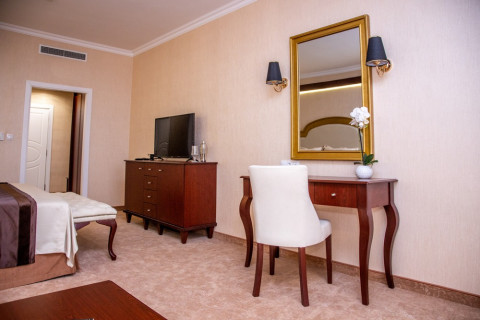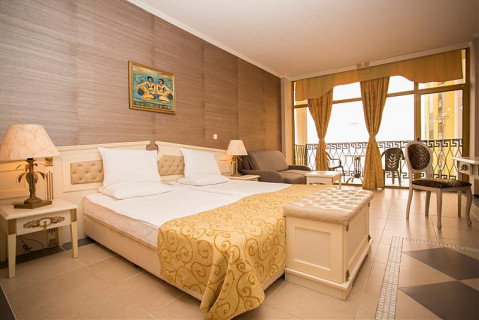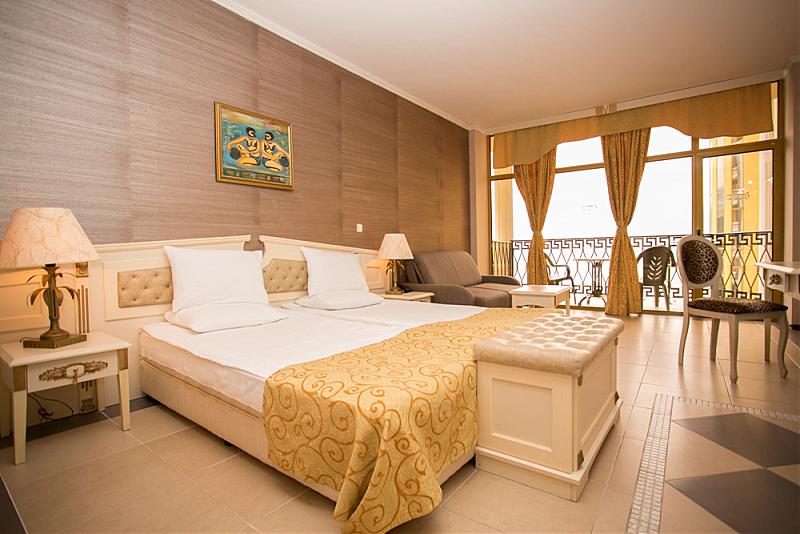 В северной части комплекса, на берегу моря. 545 номеров. New сезон 2020 года: - 30 VIP двухместных номеров полностью отремонтированые; - 42 отремонтированых студии с прекрасным видом на море; - 28 двухместных стандартных номеров, частично отремонтированы; - только для DBL SUPERIOR SV/PV отдельный ресторан, а также использование зонтика и шезлонга на пляже и пляжный сервис.
