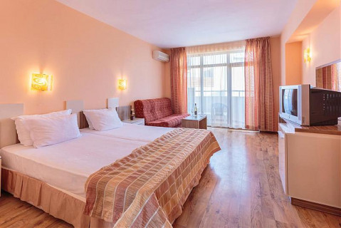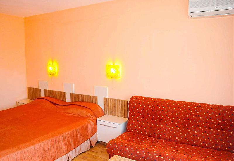 DBL: две односпальные кровати, расклад. диван; 1 ванная комната с душем; макс.2в.+2р., 3в.; 25кв.м;