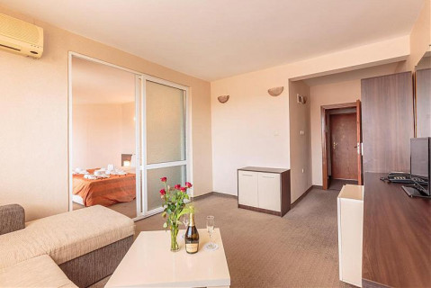 1 BEDROOM APARTMENT: 2 комнаты с межкомнатной дверью; в спальне – двухспальная кровать; в гостиной - 1 раскладной диван, ванная комната с душем; макс.2в.+2р., 3в.; 36м2;