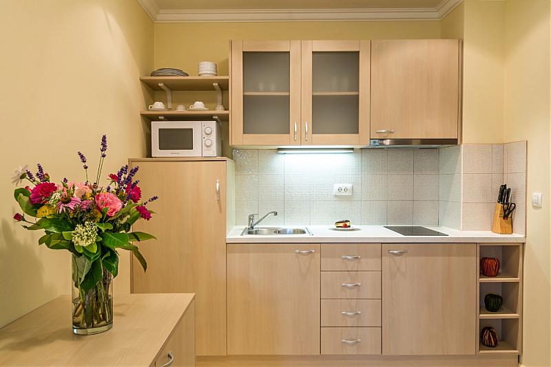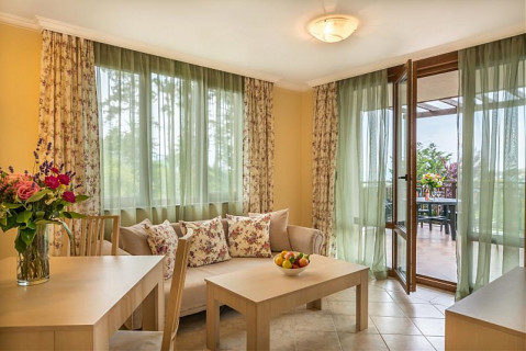 1 BEDROOM DELUXE APARTMENT: 2 помещения: гостиная с раскалдным диваном и кухонным уголком с оборудованием /эл.чайник, плита, духовка, микроволновка/; спальня с 1 двухспальная кровать, 1 ванная комната с душем; макс. 2в.+2р.,3в.+1р.; 45-50м2;