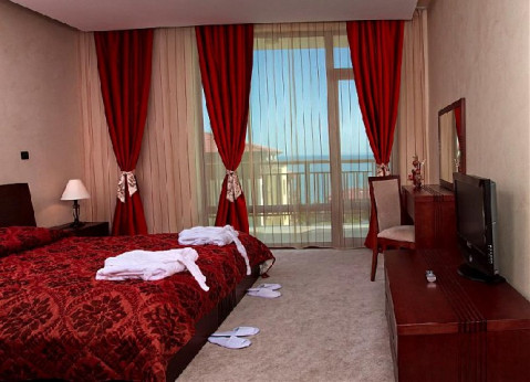 В южной части курортного города Святой Влас, на берегу моря. 54 номера в отеле
