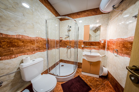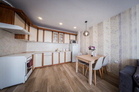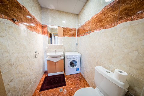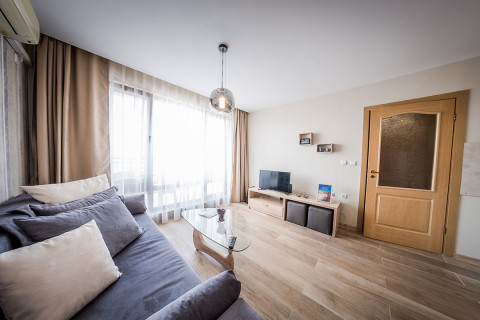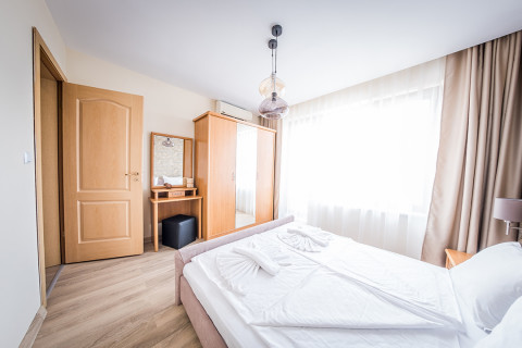 1 BEDROOM APARTMENT: спальня с двуспальной кроватью; раскладной диван в гостинной; часть апартаментов имеют кухонный бокс с печью, микроволновой печью, холодильником, чайником, тостером и полным комплектом столовых приборов; ванная комната с душем; стиральная машина; макс. 2в + 2р; 3в.;