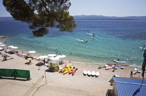 Галечный пляж в 150 м от отеля и знаменитый пляж Златни Рат в 300 м. Зонтики и лежаки за доп. плату).