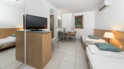 Отель расположен в живописном сосновом бору, в 150 м от пляжа, в 10 минутах ходьбы от центра г. Бол и известного пляжа Златни Рат, и в 80 км от международного аэропорта.