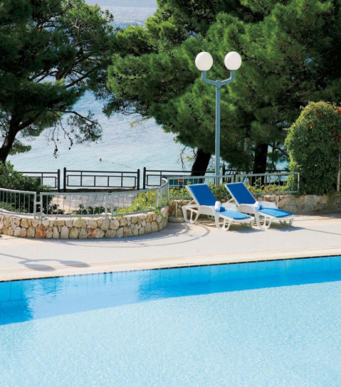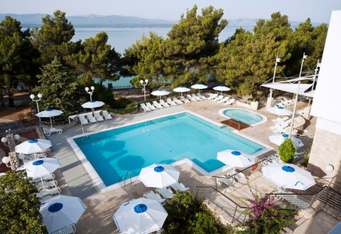 Отель находится в окружении соснового леса, в 50 м от прекрасного галечного пляжа и кристально чистого моря, в 10 минутах ходьбы от центра г. Бол и известного пляжа Златни Рат.