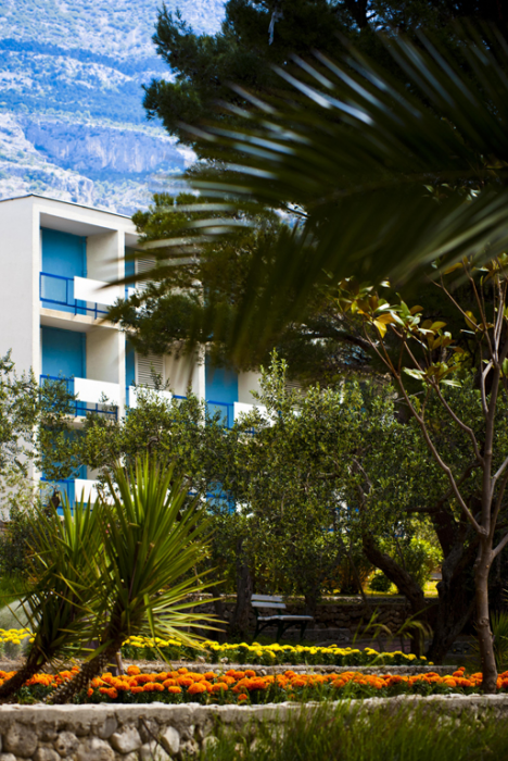 Отель расположен в 15 минутах ходьбы от центра города Макарска, в 50 м от берега. 80 км от аэропорта г. Сплит. Отель состоит из основного здания и девяти павильонов, окруженных рощей с 258 оливковыми деревьями. В трех корпусах номера обновлены.