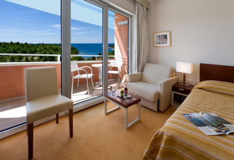 Cовременный дизайн и развитая инфраструктура в сочетании с великолепной природой и чистейшим морем гарантируют этому отелю успех у россиян. Отель заслуженно может называться одним из лучших в Хорватии. Один из немногих на побережье, работающих по системе «все включено». Отель идеально подходит как для любителей активного отдыха, так и для тех, кто предпочитает размеренность. Расположен таким образом, что у него нет соседних отелей. Обратите внимание, что в двухместных номерах имеются, в основном, французские кровати. Гостям отеля для получения услуг необходимо постоянно носить специальный браслет на руке.