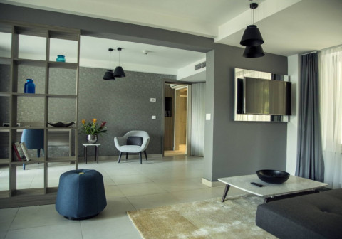 One Bedroom Suite with balcony (44 кв.м., балкон, спальня с двуспальной кроватью, гостиная с софой, 2 ванные комнаты с душем, халат и тапочки, макс. 3 взр.)