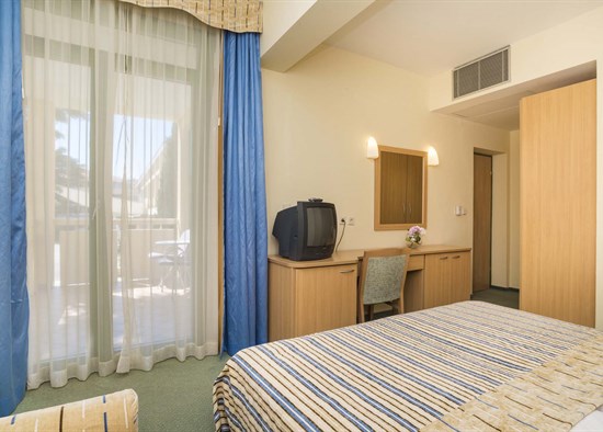 Питание: All inclusive: завтрак, обед, и ужин – шведский стол; закуски у бассейна (11:00 – 17:00); один ужин на каждые 7 дней проживания в ресторане на террасе (по предварительному заказу, только в хорошую погоду); напитки (местное вино, разливное пиво, вода, соки, кофе, чай) и в лобби-баре (08:00 – 00:00, безалкогольные и алкогольные напитки местного производства, кофе, чай – по карте напитков, импортные напитки, вино и пиво в бутылках – за доп. плату)
