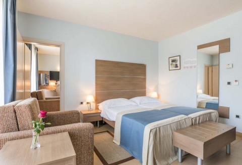 2 номера Presidential Suite (100 кв.м, просторный балкон с видом на море, 2 спальни (одна с кроватью king-size, другая с двуспальной/twin), лаунж, 2 ванные комнаты (одна с джакузи, другая с ванной), макс. 4 взр.)