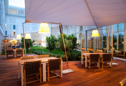 Рестораны и бары: пансионный ресторан Bava с террасой, японский a la carte ресторан Matsunoki, лаундж-бар Bar Alto Rosso, бар у бассейна Pool Bar Azur, пляжный бар Beach Bar Meridien.