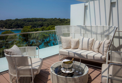 Luxury Suite (две двухместные спальни с отдельными входами, гостиная с диваном (180 х 190 см), три ванные комнаты, гардеробная, терраса с джакузи, шезлонгами и зоной отдыха, макс. 6 взр., 113 кв.м.)