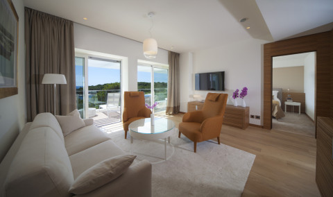 Junior Suite Park Side/ Junior Suite Sea Side (балкон, вид на сторону парка /вид на сторону моря, спальня с двуспальной кроватью , гостиная с диваном (120 х 190 см), две ванные комнаты, макс. 3 взр., 46 кв.м.)