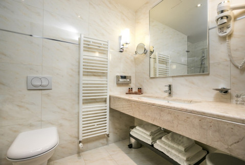В номере: кондиционер, телевизор (спутниковое ТВ), радио, телефон, мини-бар, сейф, интернет, балкон, ванная комната с ванной, фен, тапочки, wi-fi (бесплатно).