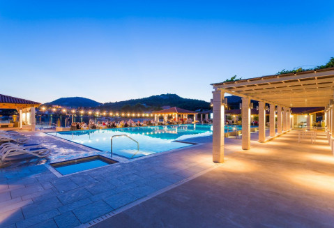 Перейти на сайт отеляОткрытый и крытый бассейны, терраса с лежаками и зонтиками, прачечная/химчистка, бизнес-центр, сейф на ресепшен, обмен валюты, сувенирный киоск, Wi-Fi (бесплатно), охраняемая парковка, ночной клуб, магазин, обслуживание номеров, тематические далматинские вечера раз в неделю, живая музыка по вечерам несколько раз в неделю, 2 номера для людей с ограниченными возможностями.