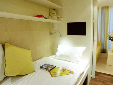FAMILY ROOM Superior Sea Side (33 кв.м, балкон в сторону моря, комната с кроватями twin + диван, отдельная детская спальная зона с 2 кроватями (в форме буквы L), отделенная раздвижной дверью от основной команты, макс. 2 взр.+ 2 реб.)