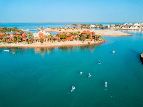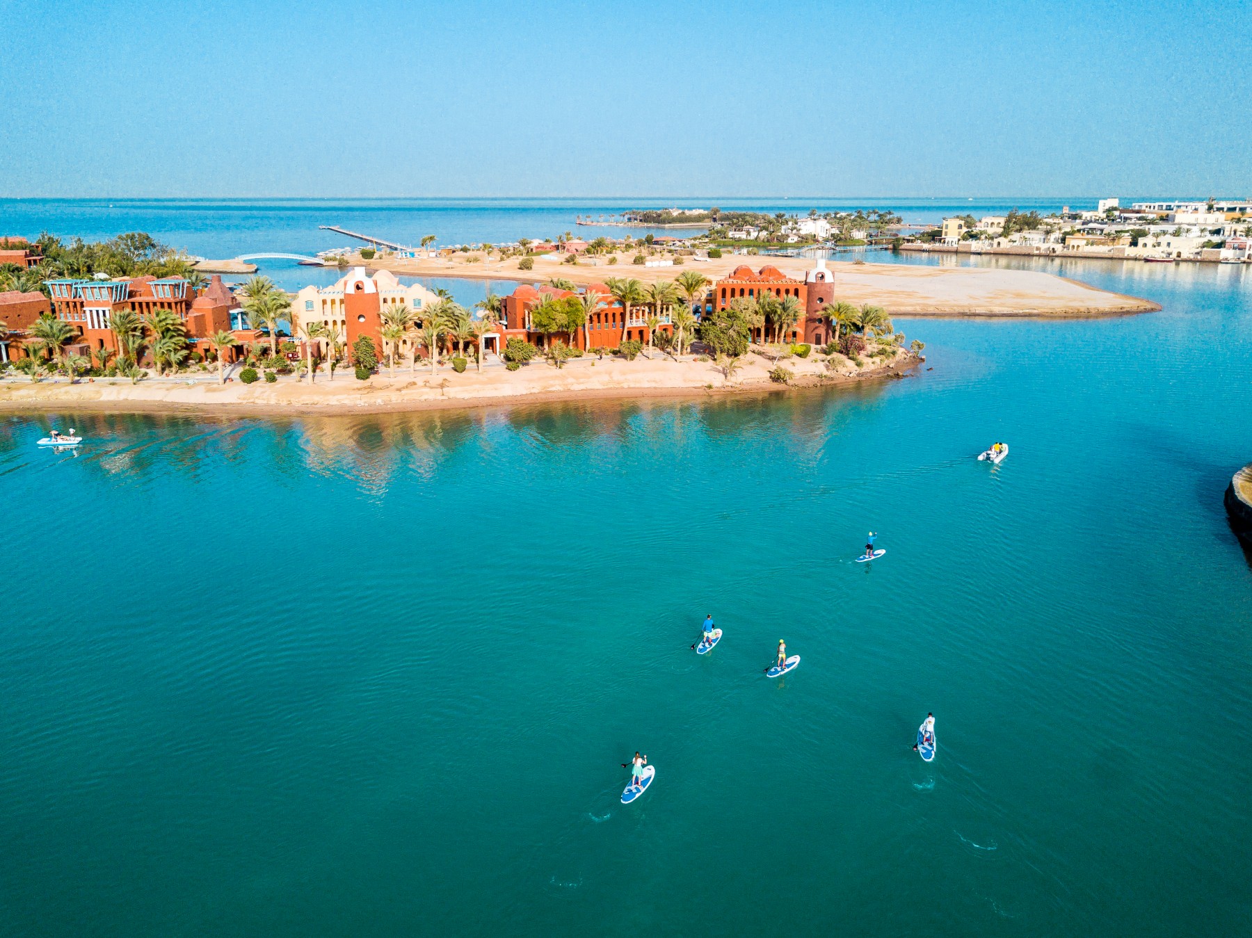 Курорт Эль-Гуна расположен в 25 км на север от Хургады на побережье Красного моря. Он устроен на манер Венеции: все отели расположены на островах, по каналам между которыми курсируют небольшие лодки, перевозящие туристов. Здесь есть две пристани для яхт, свои газета, радиостанция, больница и пивной завод — причем все построено так, чтобы наносить минимальный вред экологии. Отдыхают в Эль-Гуне по большей части немцы и голландцы.