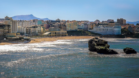 Биарриц - город на юго-западе Франции, в департаменте Атлантические Пиренеи, «Король пляжей и пляж королей», самый известный курорт атлантического побережья Франции. Расположен роскошный приморский курорт Биарриц вдоль Берега Басков на мысе святого Мартена. Департамент Атлантические Пиренеи называют французской Басконией. На всех административных зданиях департамента рядом с флагами и Евросоюза расположены и красно-зелёно-белые флаги басков.