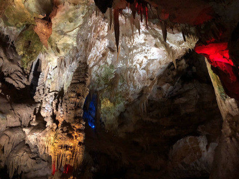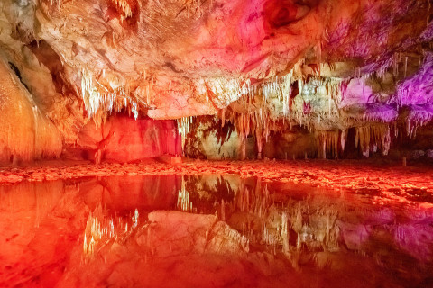 Для посещения открыт 1 км пещеры Прометея. Гости могут любоваться камнями причудливой формы и игрой подсветки.