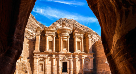 Это зрелище, вызывающее благоговейный трепет. На фоне массивного фасада 30 метров шириной и 43 метра высотой, высеченного в цельной скале темно-розового цвета, все вокруг кажется карликовым. Дворец, построенный в начале I века в качестве усыпальницы для одного из набатейских царей, воплощает в себе инженерный гений этого древнего народа.