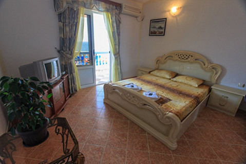В DBL: однокомнатный номер с французской кроватью и раскладывающимся креслом, кондиционер, спутниковое ТВ, Wi Fi интернет, санузел с душевой кабиной, балкон или терраса с видом на море. Максимальное размещение: 2 взр+1 реб.