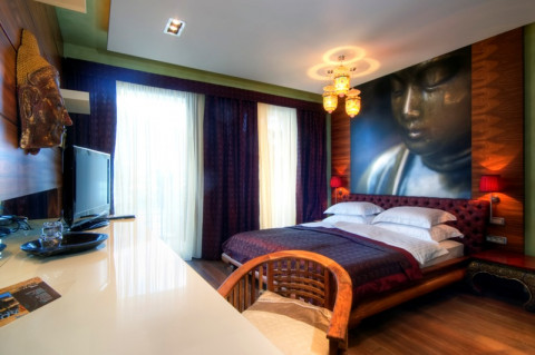 В отеле 10 двухместных номеров, категории: suite, deluxe suite и executive suite. Каждый номер исполнен в оригинальном стиле, с использованием дизайнерской мебели и изысканного вкуса. Название апартаментов говорит само за себя: Африка, Индия, Китай, Япония, Дубай и номера Delux. Апартаменты с видом на бухту и сад.