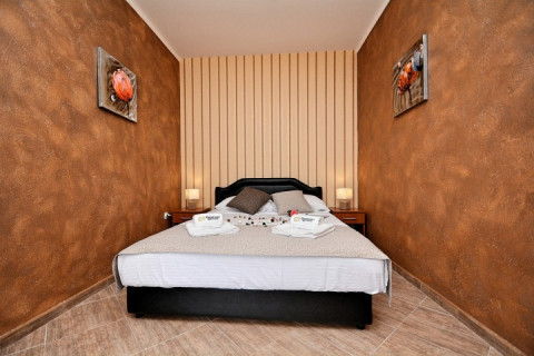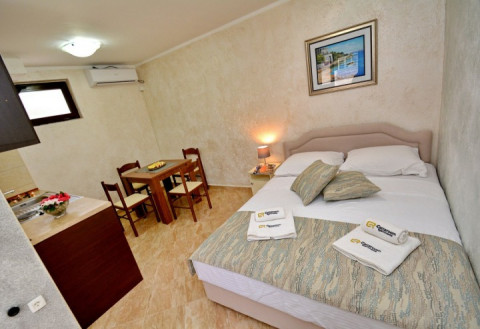 В АРР 04 PRIZ: двухкомнатный апартамент, с гостиной в которой находится раскладывающийся диван, столовая зона, полностью оборудованная кухня, в спальне французская кровать, апартаменты расположены на первом этаже, кондиционер, спутниковое ТВ, Wi Fi интернет, санузел с душевой кабиной, терраса. Максимальное размещение- 4 человека.