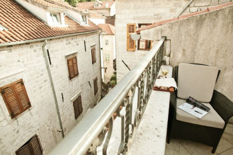 SUNNY SUITE: Большой светлый номер с гостиной зоной и большим балконом, паркетный пол, широкоформатный LCD-телевизор. С балкона открывается очень красивый вид на крепость Св. Иоанна. Большая ванная комната с двумя умывальниками, джакузи с гидромассажем и беде. Мебель из натурального дерева, с элементами ковки. Номер сочетает в себе современную отделку со средневековыми фрагментами интерьера и предметами обихода. Стены украшены пейзажами Котора, пол – настоящими шкурами.