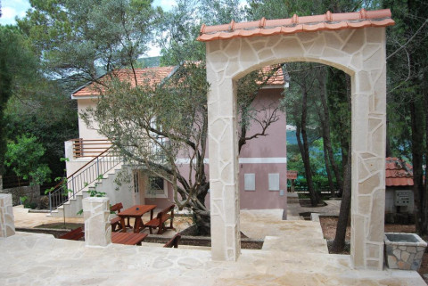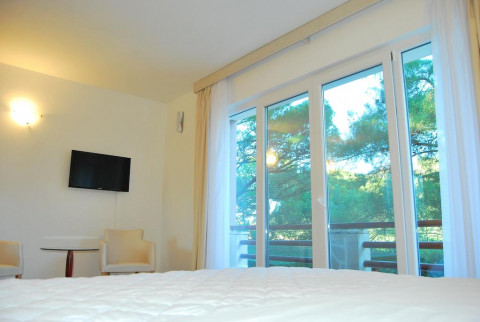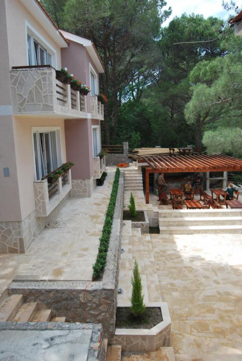 Комплекс закрытого типа расположен на полуострове Люштица на пляже Жанице в окружении вековых оливковых деревьев и соснового бора.