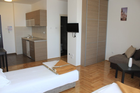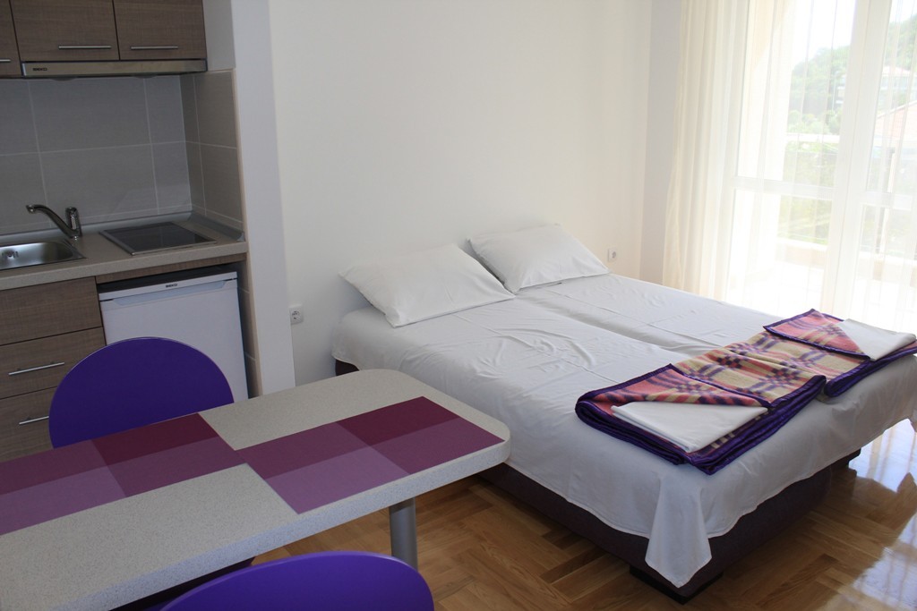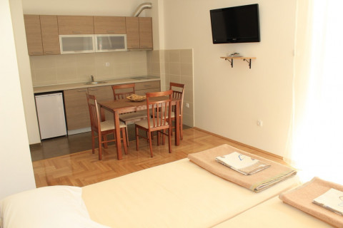 B STUD 02: всего 3 номера, все номера с балконом с видом на море. В номере: французская или раздельные кровати, возможность дополнительного места, встроенная кухня, холодильник, необходимая посуда, столовая зона, ванная комната с душевой кабиной, кондиционер, интернет Wi-Fi, кабельное телевидение. Площадь - 25-30 м2.