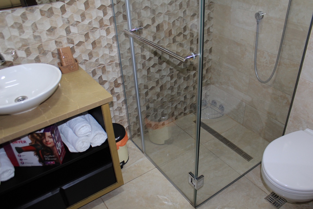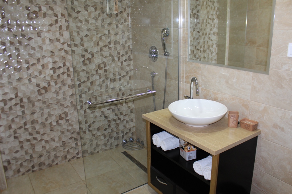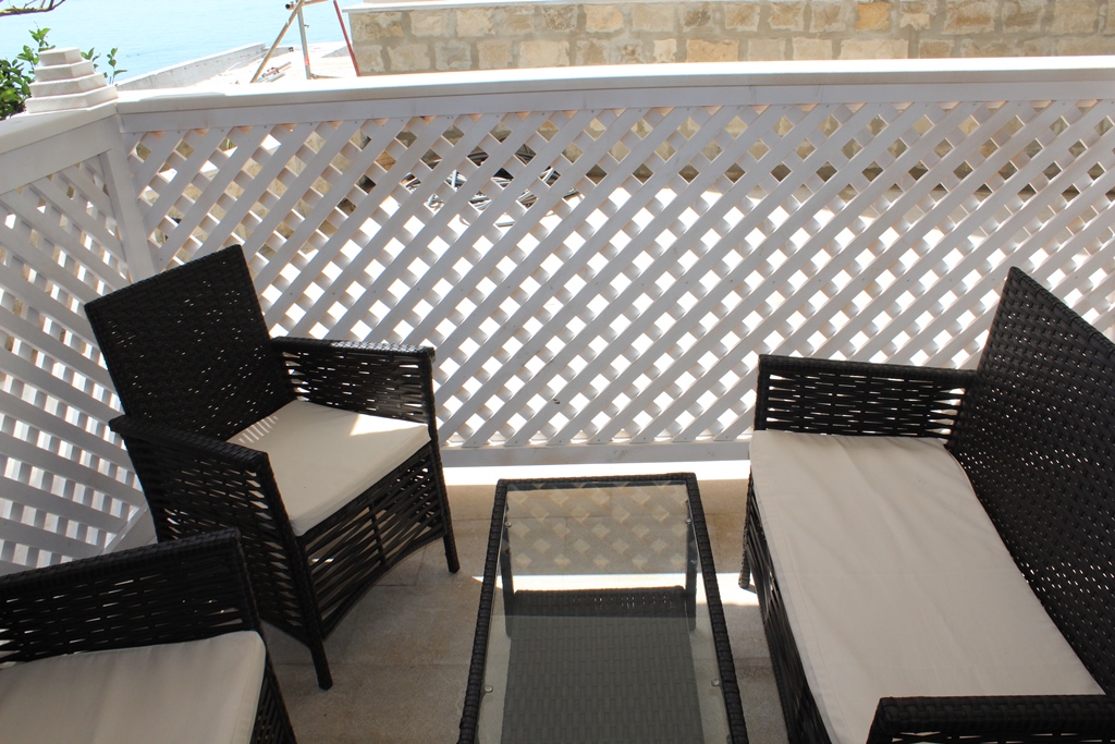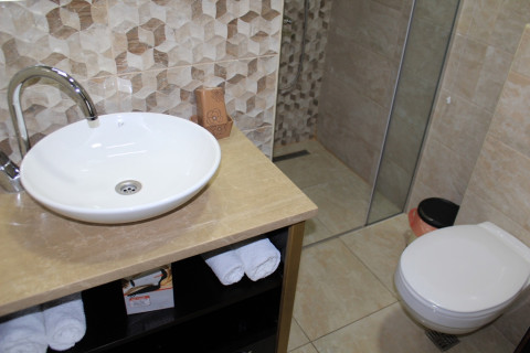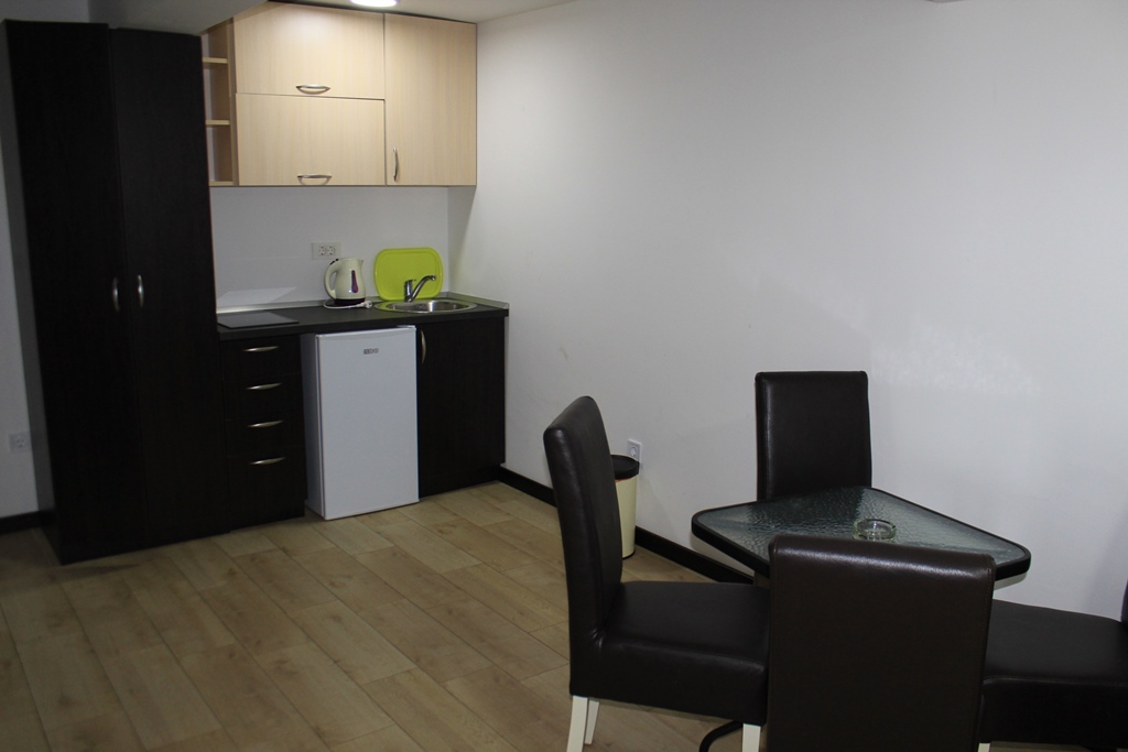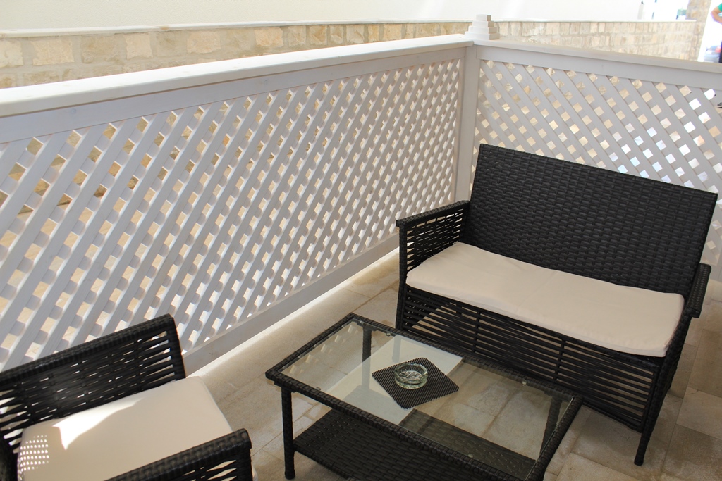 LUX АРР 04: Двухкомнатный номер на первом этаже с отдельным входом, в спальне французская кровать, в гостиной угловой диван , кухня, обеденная зона, ванная комната с душевой кабиной, фен, кондиционер, холодильник, чайник, плазменный телевизор, интернет, cейф, перед входом в номер терраса. Площадь номера 30 м. Максимальное размещение 4 человека.