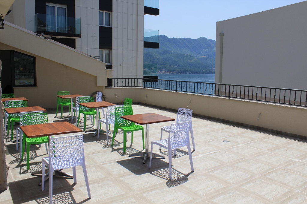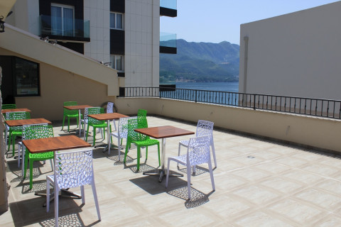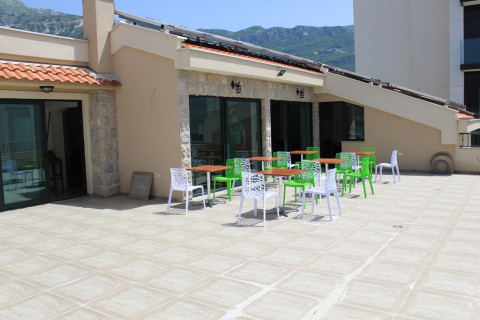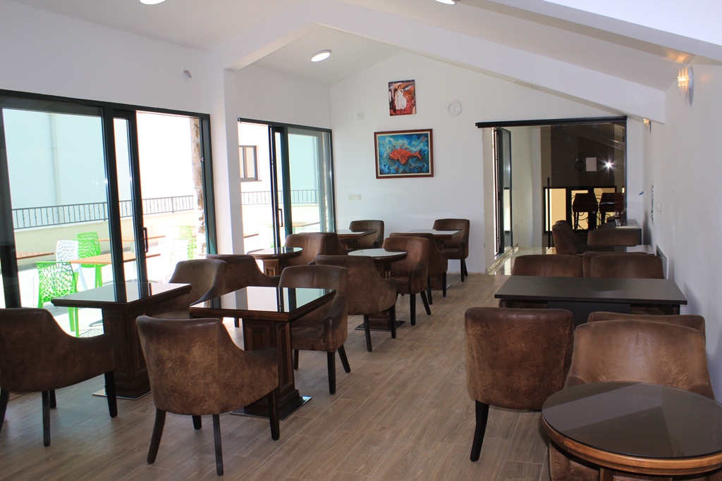 Рецепция, лифт, ресторан на послденем этаже (предоставляются только завтраки шведский стол), открытая терраса с лежаками с видом на море, центральное кондиционирование.