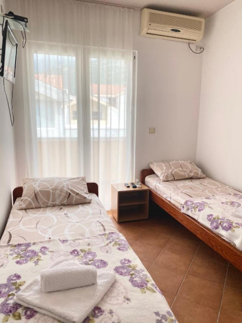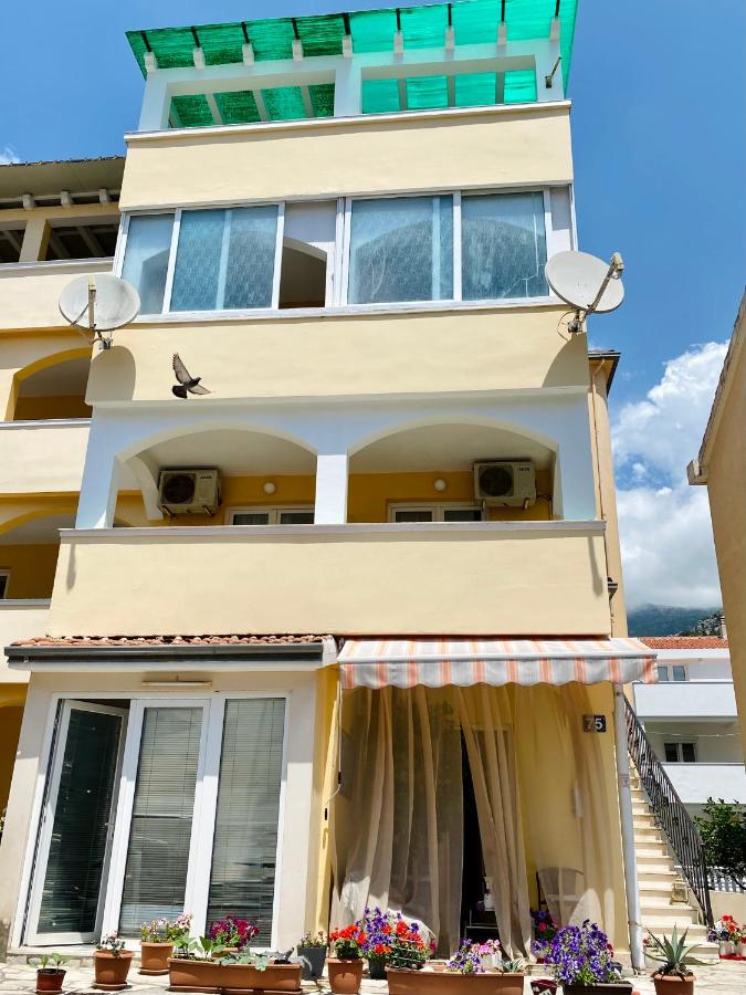 В тихой части Будвы, в 400 м от моря, от комплекса Slovenska Plaza - 150 м. В 10 метрах от ресторана Zlati Bor на тихой улице.