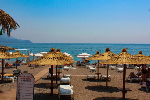 Бечичи, расположившийся всего в трёх километрах от Будвы, гордится отличным мелкогалечным, вперемешку, с песком пляжем длинной более двух километров. Пляж окружён красивыми территориями отелей с роскошными парками, благоухающими ароматами субтропических деревьев и ярких цветов. Большинство территории пляжей принадлежит отелям расположенным неподалёку, поэтому зонтики и лежаки для отдыхающих в них туристов бесплатные, а вот если вы проживаете в апартаментах, то за комплект придётся выложить 5 евро в день. А можно совершенно бесплатно воспользоваться своей циновкой. Правда в пик сезона, в июли и августе трудно будет найти место куда её порложить.