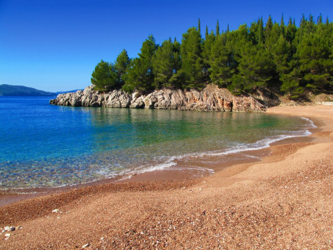 Пляж с розово-красной мелкой галькой расположен в направлении Милочера и открыт только для постояльцев отеля. Такой же пляж с другой стороны перешейка открыт для всех желающих. Так же здесь присутствует вилла «21» — самая дорогая вилла Адриатического побережья, стоимость проживания в ней определяется аукционом.