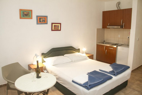 В STUD 04: однокомнатная студия с французской и двумя раздельными кроватями, полностью оборудованная кухня, кондиционер, спутникове ТВ, Wi Fi интернет, санузел с душевой кабиной, терраса – сторона моря или с видом на море. Максимальное размещение – 4 человека.