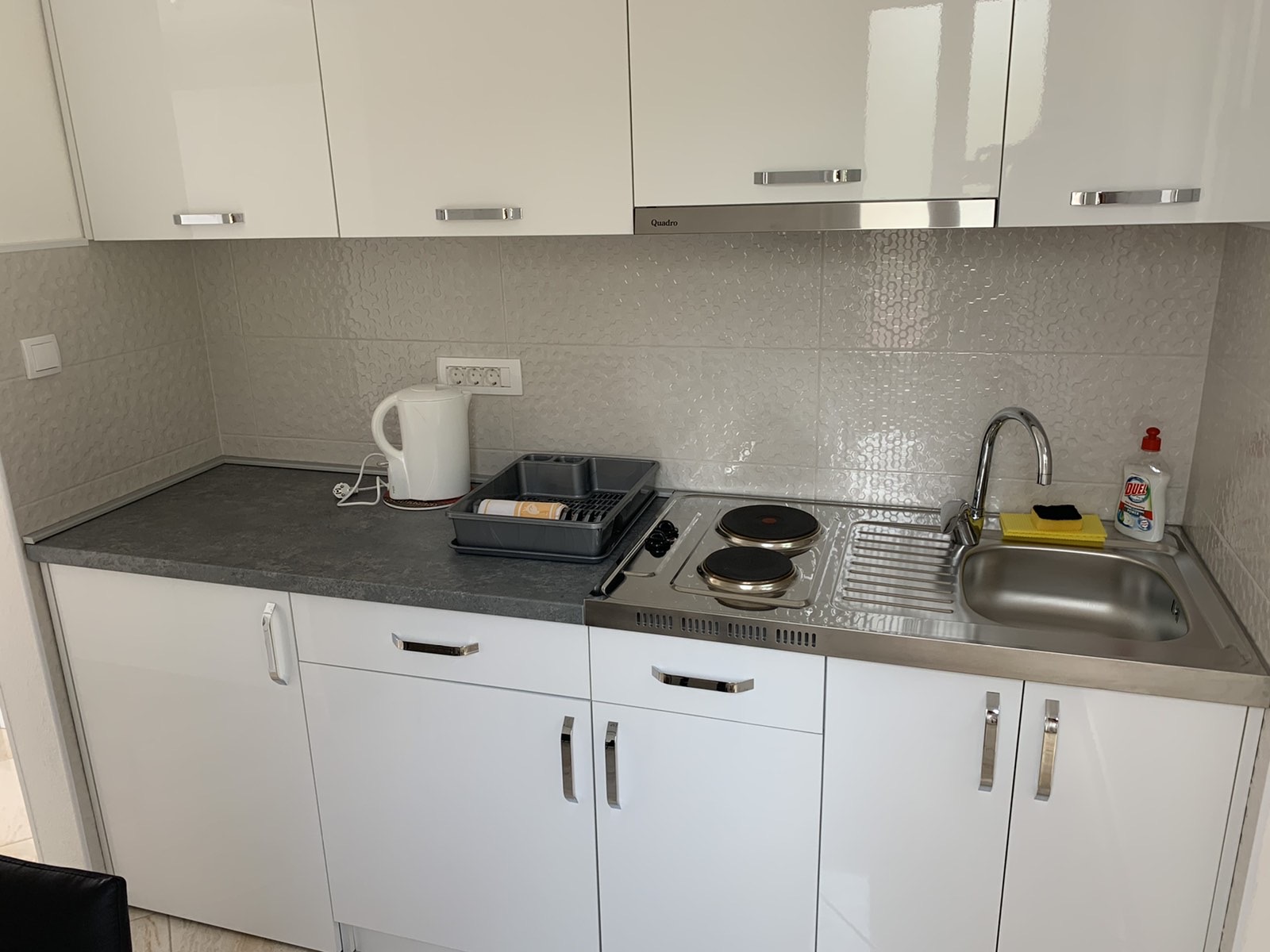 однокомнатный номер, две двуспальные кровати, кухня, кабельное ТВ, кондиционер, стиральная машина, терраса, WiFi.