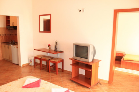 В APP 04: 2-х комнатный номер, в спальне раздельные кровати, в гостиной- французская кровать, кухня, холодильник, кабельное телевидение, кондиционер, фен, сейф, терраса, душевая кабина.
