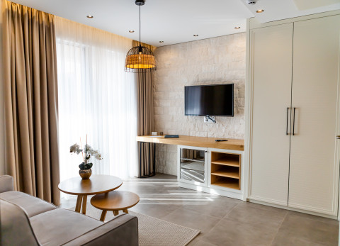 B APP 1 BR: двухкомнатный номер, в гостиной раскладывающийся диван, в спальне французская кровать или раздельные кровати, кондиционер, спутниковое ТВ, Wi Fi интернет, сейф, мини бар, чайник, санузел с душевой кабиной, фен, балкон. Максимальное размещение: 2 взр + 2 реб. Площадь: 32 м2.