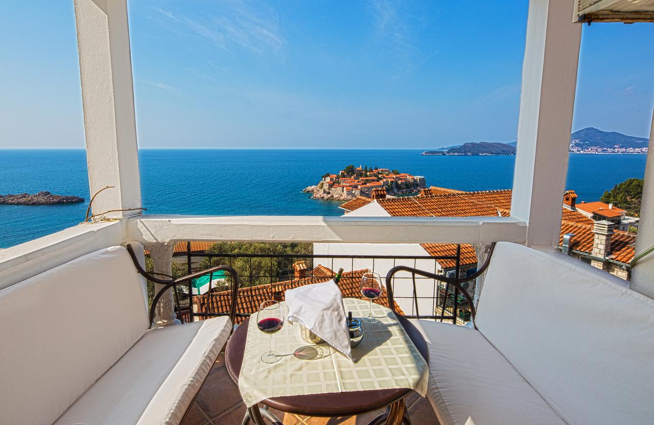 Отель расположен в исключительном месте, в поселке Святой Стефан, в 8 км от Будвы (2 евро – городской автобус Olimpia Express).