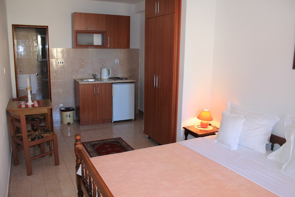 В Stud 02: Номер расположен на втором этаже, реновация – 2013 года. Новая мебель, французская кровать, кондиционер, кабельное телевидение, мини-кухня, холодильник, интернет, ванная комната с душевой кабиной, терраса с видом на море.