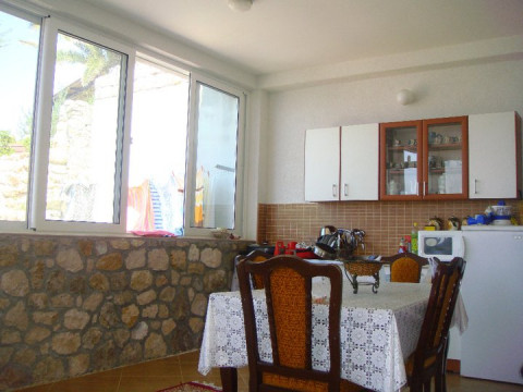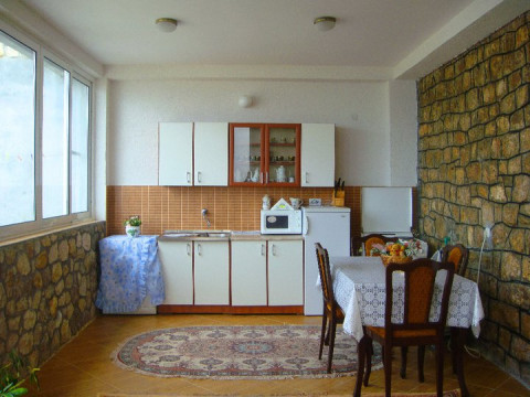 Двухэтажное здание: на втором этаже находится 5 двухместных номеров, большая кухня для общего пользования, с зоной отдыха и телевизором, две открытые террасы с видом на море; на кухне плита, холодильник, микроволновая печь, тостер, необходимая посуда, на террасе есть гриль (бесплатно), стиральная машина (бесплатно).