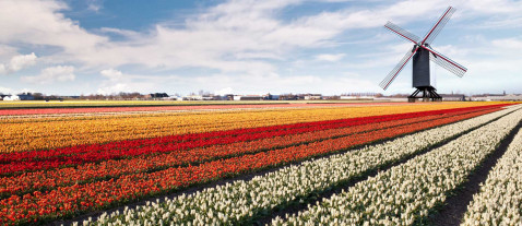 Тюльпаны – этот нежный весенний цветок уже много веков является неофициальным национальным символом Нидерландов. Впервые луковицы тюльпанов были завезены в Голландию в 1590 г., и с тех пор в стране начинается настоящая тюльпаномания. В 80-х и 90-х годах знаменитые голландские футболисты Рууд Гуллит, Марко ван Бастен и Франк Рейкаард были известны в Италии как «тюльпаны». Сегодня самый известный цветочный парк, где устраиваются выставки и можно любоваться бесчисленными уникальными видами тюльпанов. И не только - нидерландский Кейкенхоф или Сад Европы.