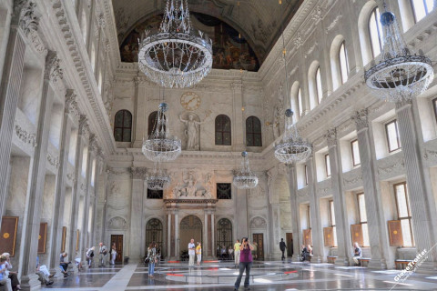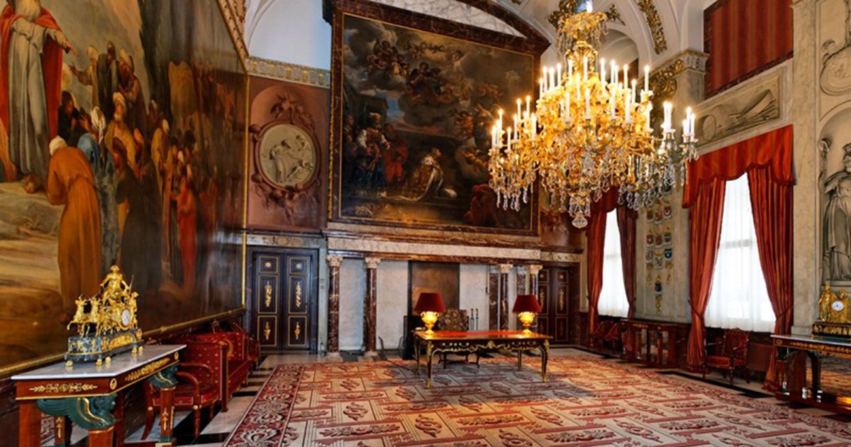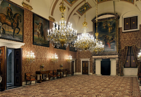 Все внутренние помещения отличаются богатым убранством — отделка мрамором и золотом впечатляет своей роскошью. Интерьер дополняет старинная антикварная мебель в замысловато-вычурном стиле ампир, массивные люстры из хрусталя и полотна известных голландских живописцев.