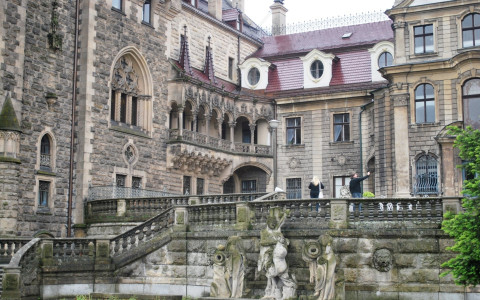 Этот старинный замок расположен в Опольском воеводстве, в деревне Мошна, которая, согласно легенде, когда-то принадлежала Ордену тамплиеров. Мошненский замок был построен в конце XVIII — начале XIX века на месте пострадавшего от пожара барочного дворца семьи фон Тиле-Винклеров. Сейчас он открыт для туристов. Часть замка местные власти превратили в отель, открыли там ресторан, кафе и даже спа-центр. В часовне регулярно проходят концерты сакральной музыки, а в залах — выставки картин. Чаще всего туристы приезжают в Мошну в теплое время года. Возле дворца на двухстах гектарах раскинулся великолепный парк, по которому можно погулять, увидеть трехсотлетние дубы и полюбоваться всеми 99 башнями невероятно красивого замка. Любители экстрима могут воспользоваться специальным предложением: отправиться на необычную экскурсию по темным подземным лабиринтам и башням.