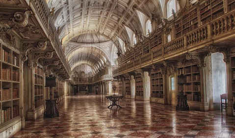 В дворцовый комплекс входят королевский дворец, величественный францисканский монастырь, огромная монастырская библиотека и красивейшая базилика. Дворец поражает своими размерами: его общая площадь 40 тысяч кв.м., длинна главного фасада – 220 м, количество залов – 880, количество окон – 4500, дверных проемов – 5200. Здесь находится самая большая в мире коллекция колоколов. В двух колокольнях установлены карильоны из 57 колоколов, изготовленных специально во Фландрии. Мраморная базилика дворца по размерам сравнима с собором. В церкви находятся 11 часовен, искусно украшенных рельефами и мраморными статуями из Италии, а также гордость Мафры – библиотека, насчитывающая 40 000 томов, среди которых встречаются экземпляры с многовековой историей и золотыми страницами.