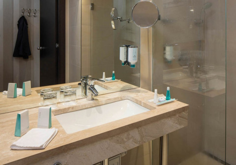 12 номеров Executive Deluxe (35 кв.м, вид на пешеходную зону, доступ в Executive lounge на 6-м этаже, гостиная зона, ванная комната со стеклянной перегородкой, эксклюзивная косметика, халат и тапочки; приветственный напиток по прибытии, бесплатный мини-бар (без алкоголя), кофе-машина, early check-in 10:00, late check-out 15:00)
