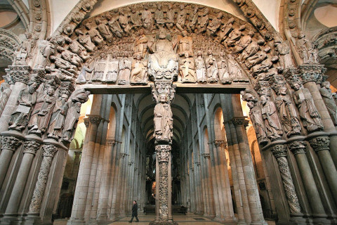 Главная городская достопримечательность - Сантьягский кафедральный собор св. Иакова. Его строительство было начато в 1075 г. и продолжалось до XVIII в. Собор построен в форме креста. Его длина 75 м, ширина – 57 м. За богато украшенным алтарем - постамент, окруженный резной каменной оградой. Это та самая ограда, которая была построена по приказу халифа Альмансора. Хорошо сохранился романский «Портик славы»мастера Матео, который называют симфонией в камне.