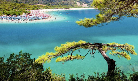 Пляжи поселка Олюдениз, что в 15 км от Фетхие, не уступают красотой лучшим курортам мира. «Нереальные цвета», «райское местечко», «дух захватывает» — так туристы описывают эти края. Визитная карточка Олюдениз — пляж Голубая лагуна. Поскольку расположен он в заповедной зоне, вход сюда платный — 7 TRY. За зонты и лежаки также взимается плата — по 10 TRY.