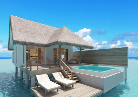1 номер King Ocean Suite (393 кв.м, вілла над водою з прямим спуском у воду і власним басейном, дві спальні, вітальня, гардеробна, дві ванні кімнати)